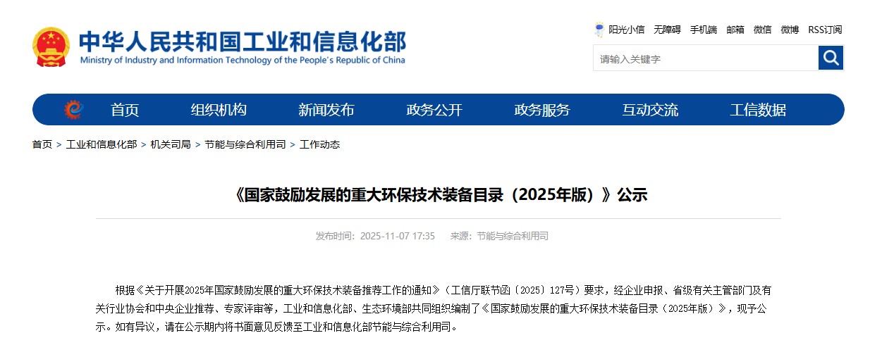 近日,由工信部、生态环境部共同组织编制的《国家鼓励发展的重大环保技术装备目录(2025年版)》已公示完毕。金年会环保有限公司凭借其国际领先的 “无金属化高通量动态密封过滤装备” 成功入选,标志着公司在环保技术装备领域的创新实力与技术先进性获得了国家层面的权威认证。